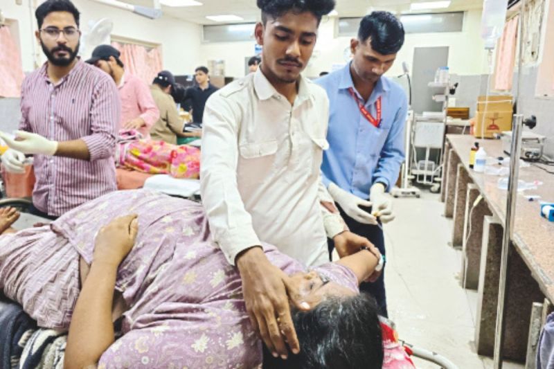 जेएलएन अस्पताल में गंभीर घायल महिला यात्री का उपचार करते चिकित्सक (फोटो: पत्रिका)