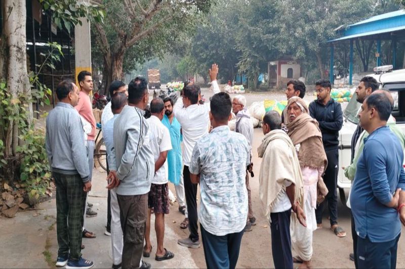 सुबह मौके पर जमा व्यापारी (फोटो - पत्रिका)