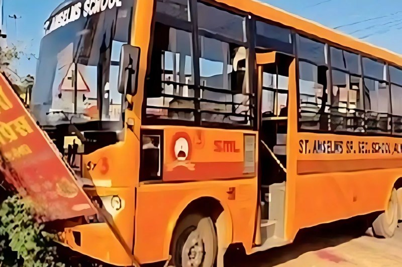 हादसे के बाद खंभे से टकराई स्कूली बस
