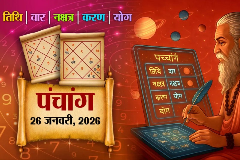 Aaj Ka Panchang 26 January 2026:आज का पंचांग सोमवार, 26 जनवरी 2026 को धार्मिक, ज्योतिषीय और राष्ट्रीय दृष्टि से विशेष महत्व रखता है। इस दिन भीष्माष्टमी, दुर्गाष्टमी और भारतीय गणतंत्र दिवस 9Republic Day) का शुभ संयोग बन रहा है। पंचांग के माध्यम से आप दिन की तिथि, नक्षत्र, योग, करण, शुभ चौघड़िया, राहु काल, दिशा शूल, चंद्र राशि तथा आज जन्मे बच्चों की राशि और नामाक्षर की संपूर्ण जानकारी प्राप्त कर सकते हैं, जिससे दिनभर के कार्य शुभ और सफल बनाए जा सकें। आज का टैरो राशिफल पढ़े