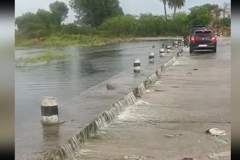 आंधी- नदी की रपट पर चलती चादर व रपट पर नहाने वालों की लगी भीड़।