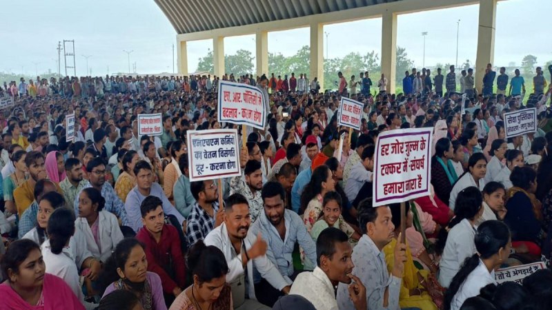 District Hospital, Durg जिला अस्पताल, दुर्ग में हड़ताल का असर देखने को मिला। यहां nhm strike एनएचएम के 97 कर्मचारी हड़ताल पर रहे। जिला अस्पताल में एनएचएम के कर्मचारी हड़ताल पर गए हैं। उनकी कमी को दूर करने के लिए अस्पताल प्रबंधन ने जीएनएम नर्सिंग छात्राओं की दो दिनों तक ड्यूटी लगा दी है। सरकारी नर्सिंग कालेज, दुर्ग की छात्राएं ड्यूटी में मौजूद रहीं।