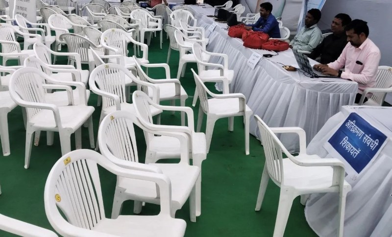 सूने पड़े शिविर, खाली कुर्सियां और निराश आवेदक