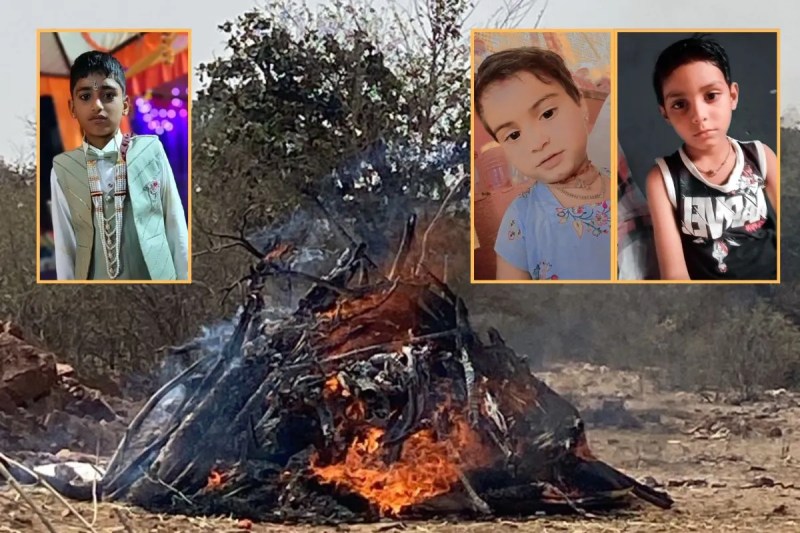 3 Siblings Cremated Together: बूंदी के डाबी थाना क्षेत्र के पराणा के पास बुधवार देर शाम को एनएच 27 के लिंक रोड पर अनियंत्रित ट्रेलर ने मोटरसाइकिल को टक्कर मार दी थी। दुर्घटना में मोटरसाइकिल सवार अंकित बंजारा (8), सुमन बंजारा (6), और करण बंजारा (13) की मौके पर ही मौत हो गई थी। गुरुवार सुबह डाबी थाना पुलिस ने बच्चों के शवों का पोस्टमार्टम करवा परिजनों को सुपुर्द कर दिया।