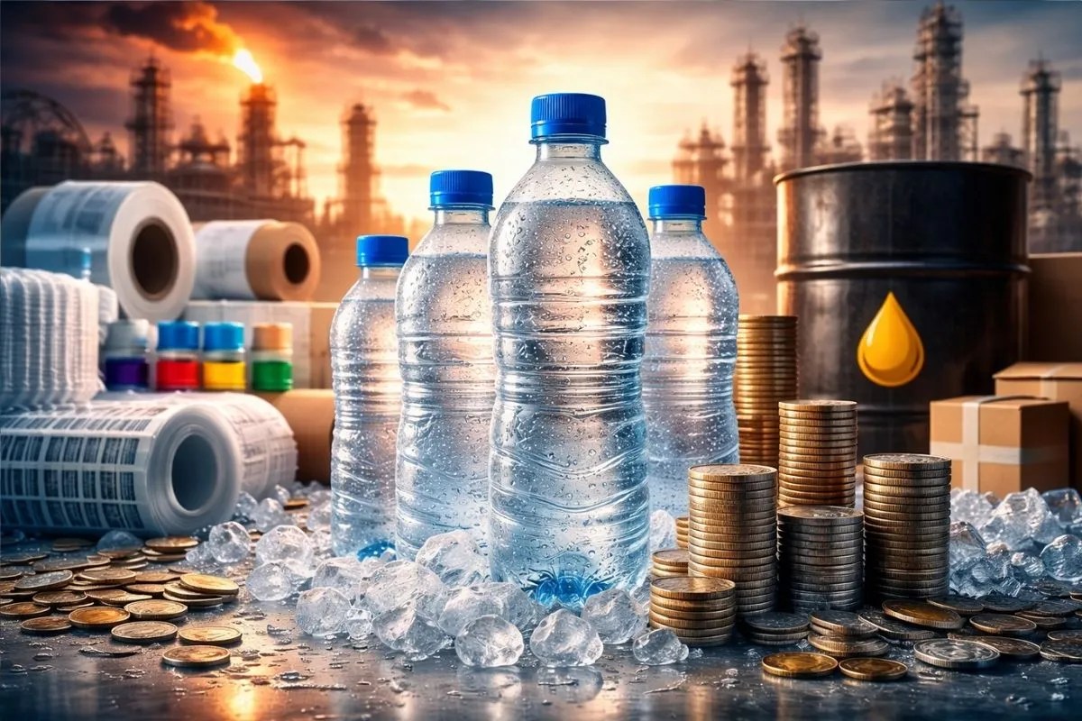 Packaged Water Industry: मिडिल ईस्ट में युद्द की स्थिति ने दुनियाभर में महंगाई बढ़ा दी है। इस समय दुनिया के अधिकतर देश तेल और गैस की महंगाई से जूझ रहे हैं। भारत में भी एलपीजी संकट गहरा रहा है। कमर्शियल और घरेलू एलपीजी गैस सिलेंडर की सप्लाई शॉर्टेज से लोग परेशान हैं। इस बीच पानी की बोतल भी महंगी होने की आशंका है। कच्चे तेल की बढ़ती कीमतों के चलते यह आशंका गहरा रही है। शुक्रवार को भी ब्रेंट क्रूड का भाव 100 डॉलर से ऊपर ट्रेड करता दिखा है।