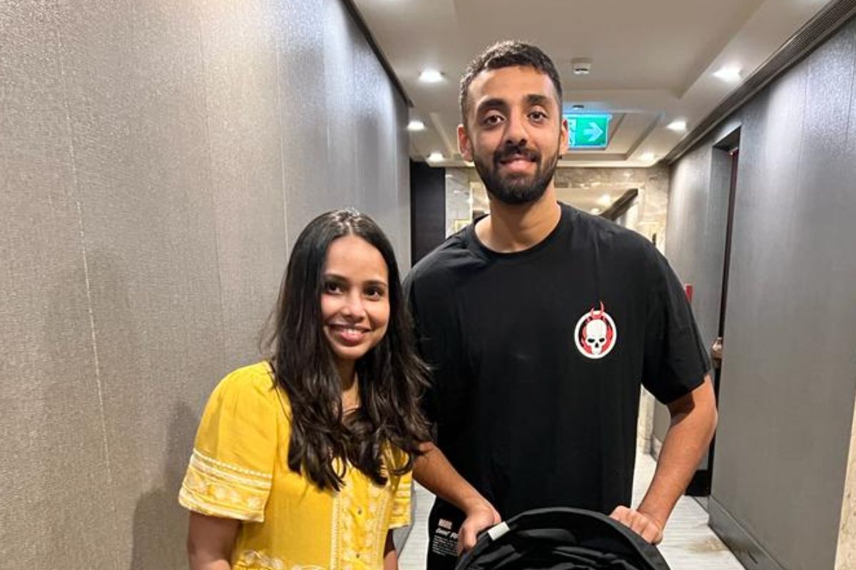 वरुण चक्रवर्ती और नेहा खेड़ेकर (फोटो- X@/chakaravarthy29)