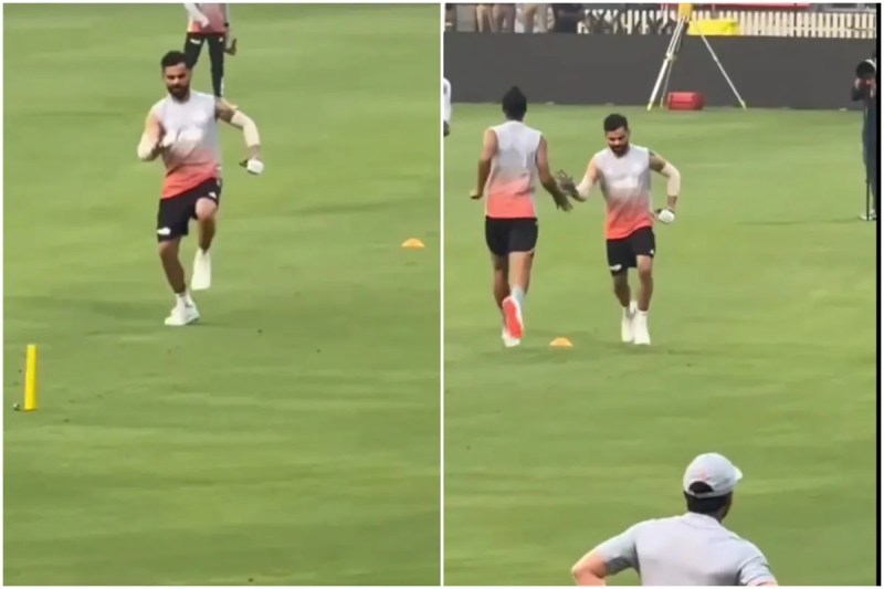 प्रैक्टिस सेशनल के दौरान टीम इंडिया के पूर्व कप्तान विराट कोहली बेहद मस्ती और जोश भरे अंदाज में नजर आए (Photo - Video Screenshot)