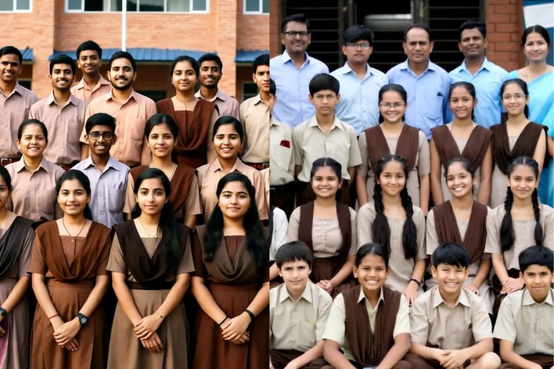 प्राइवेट और सरकारी स्कूलों में एक जैसी यूनिफॉर्म की प्रतीकात्मक तस्वीर, मेटा एआइ