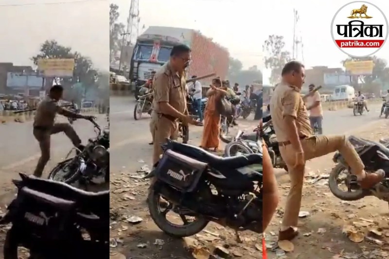 Bareilly: A video that went viral from Devchara intersection in Bhamora police station area has created a stir in the entire region. In the video, Sub-Inspector Narendra Raghav, posted at Bhamora police station, is seen displaying high-handedness in uniform, breaking and damaging motorcycles parked on the roadside. It is being said that this incident occurred while the sub-inspector was intoxicated.