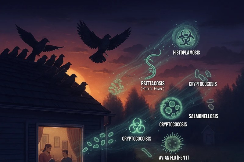 Even if birds are not spreading infectious diseases, their feathers, droppings, and dander can cause allergies or worsen asthma. Regular cleaning, using HEPA filters indoors, and keeping bird nests away from living spaces can reduce the risks.