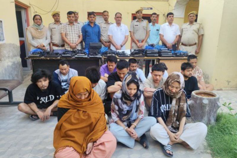 Jaipur: Mandawa police in Jhunjhunu District, Rajasthan, have achieved a major breakthrough, uncovering an international cyber fraud ring operating from a hotel on Fatehpur bypass. The ring comprised 13 accused, including three women. Police seized 21 laptops, 21 mobile phones, and other electronic equipment from the scene.