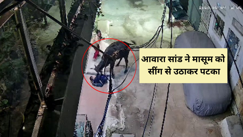 stray bull attacks 6 year old child viral video (फोटो- Patrika.com)
