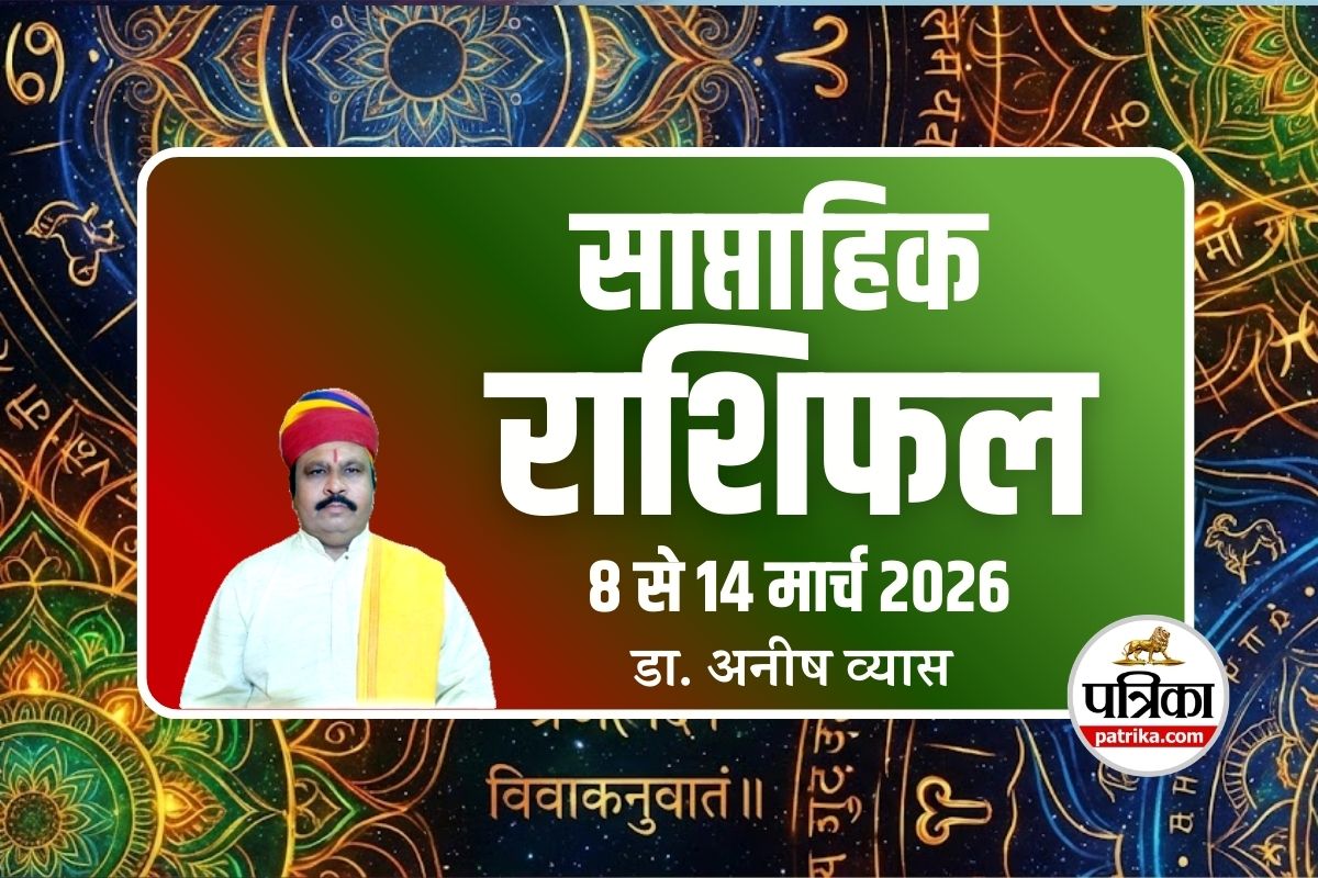 Weekly Horoscope 8 to 14 March 2026 : Saptahik Rashifal : साप्ताहिक राशिफल 8 से 14 मार्च 2026: मार्च का दूसरा सप्ताह कई राशियों के लिए नई संभावनाएं और अवसर लेकर आ रहा है। 8 से 14 मार्च 2026 के इस साप्ताहिक राशिफल में तुला से लेकर मीन राशि तक के लोगों के लिए करियर, व्यापार, धन, स्वास्थ्य और प्रेम जीवन से जुड़े महत्वपूर्ण संकेत मिलेंगे। कुछ राशियों को इस सप्ताह आर्थिक लाभ और सफलता के नए मौके मिल सकते हैं, जबकि कुछ को खर्च, स्वास्थ्य या पारिवारिक मामलों में थोड़ा सतर्क रहने की जरूरत होगी। आइए जानते हैं भविष्यवक्ता और कुण्डली विश्ल़ेषक डा. अनीष व्यास से इस सप्ताह आपकी राशि के लिए सितारे क्या संकेत दे रहे हैं।