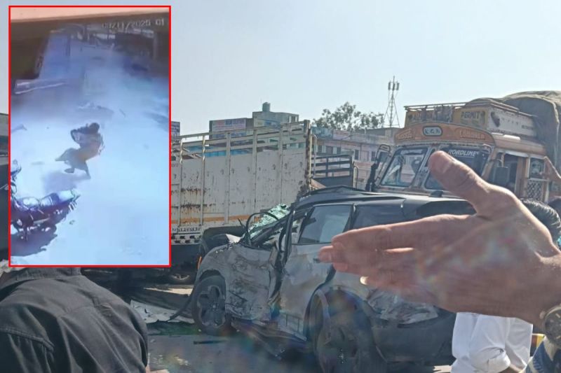 जयपुर। राजधानी जयपुर के हरमाड़ा स्थित लोहामंडी क्षेत्र में सोमवार दोपहर को दिल दहला देने वाला सड़क हादसा हुआ। एक बेकाबू डंपर ने करीब एक दर्जन वाहनों को अपनी चपेट में ले लिया। हादसे में अब तक 14 लोगों की जान जा चुकी है, जबकि कई गंभीर घायल हो गए। घटना का सीसीटीवी वीडियो सामने आया है। इस खौफनाक वीडियो में नजर आ रहा है कि कुछ लोग सड़क पर गुजर रहे थे। इस दौरान तेज रफ्तार डंपर आता है और लोगों को टक्कर मारते हुए आगे निकल जाता है। हादसा इतना खौफनाक था कि कई शव डंपर के नीचे फंस गए।