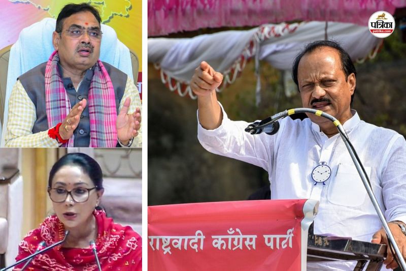 महाराष्ट्र के उपमुख्यमंत्री अजित पवार व राजस्थान के सीएम भजनलाल व डिप्टी सीएम दिया कुमारी। फोटो पत्रिका - ANI