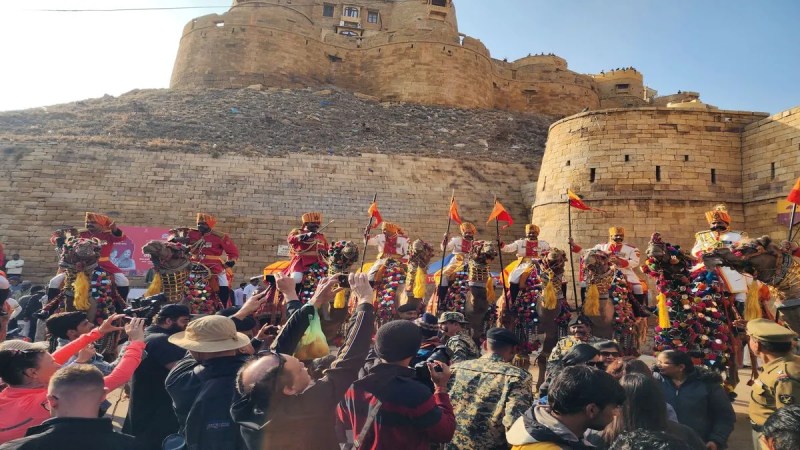 विश्वविख्यात मरू महोत्सव-2026 का दूसरे दिन के कार्यक्रमों का उद्घाटन शुक्र वार को शहीद पूनमसिंह स्टेडियम में हुआ। अतिरिक्त जिला कलक्टर परसराम सैनी ने आकाश में रंग-बिरंगे गुब्बारे उड़ाकर महोत्सव का औपचारिक शुभारंभ किया। उद्घाटन सत्र में मरुधरा की लोकसंस्कृति, परंपराएं और जीवनशैली दर्शाने वाली प्रतियोगिताएं दर्शकों का मुख्य आकर्षण रहीं। मरु श्री प्रतियोगिता में कुल 35 प्रतिभागियों ने भाग लिया। पारंपरिक वेशभूषा, कद-काठी, दाढ़ी-मूंछ और जैसलमेरी व्यक्तित्व के आधार पर निर्णायक मंडल ने मूल्यांकन किया। निर्णायकों के अनुसार जैसलमेर के मनीष पंवार को मरूश्री-2026 का खिताब प्राप्त हुआ। इसी तरह मिस मूमल प्रतियोगिता में आठ प्रतिभागियों ने पारंपरिक परिधान और श्रृंगार में प्रस्तुति दी। मूल्यांकन के बाद बीकानेर की कुसुम पंवार को मिस मूमल-2026 चुना गया। मिसेज जैसलमेर प्रतियोगिता में विवाहित महिलाओं ने उत्साहपूर्वक भाग लिया। प्रतियोगिता में बिलाड़ा, जोधपुर की ताज ने उत्कृष्ट प्रस्तुति के आधार पर मिसेज जैसलमेर-2026 का ताज अपने नाम किया।