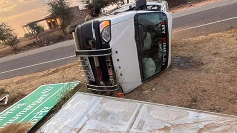 रामदेवरा के पास से निकल रहे नेशनल हाईवे- 11 पर सोमवार सुबह एक सड़क हादसा हुआ, जिसमें ईको वैन गाड़ी पलट गई। हादसे में गाड़ी में सवार बाकी यात्री सुरक्षित है, वहीं ड्राइवर को चोट लगी। जानकारी के अनुसार सोमवार सुबह करीब 6.30 बजे सीमा बॉर्डर फलोदी के पास नेशनल हाईवे- 11 पर इको वैन गाड़ी नंबर जीजे- 38 बीएफ 5721 पर अचानक से सामने गाय आने से पलट गई। वैन में 3 व्यक्ति सवार थे।