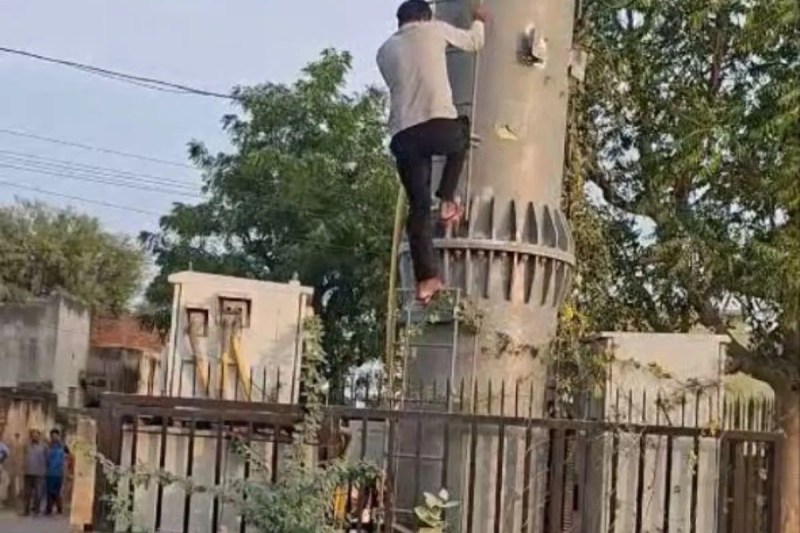 मोबाइल टावर पर चढ़ते युवक की फोटो: पत्रिका
