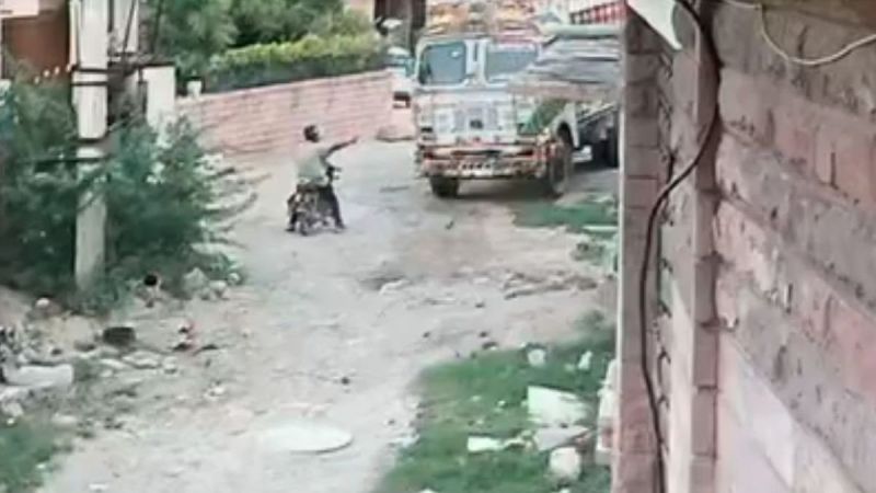 मामा के घर गोलियां चलाता बाइक सवार भांजे का सीसीटीवी फुटेज।