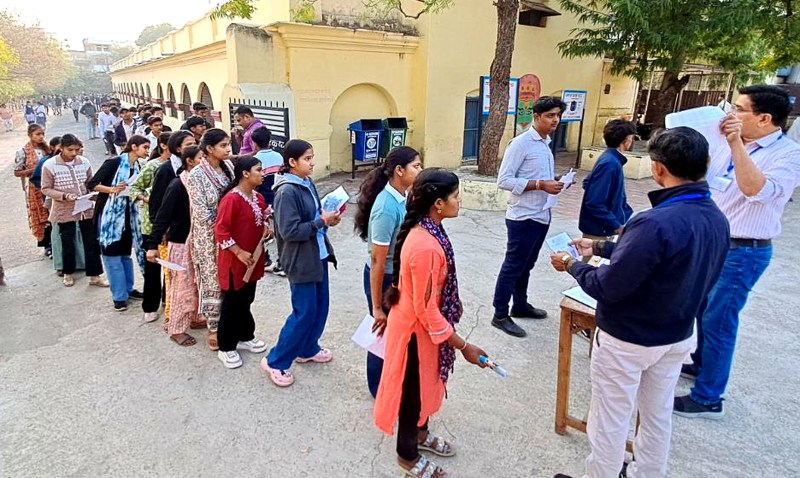 खंडवा में परीक्षा केंद्रों पर चेकिंग करते पर्यवेक्षक