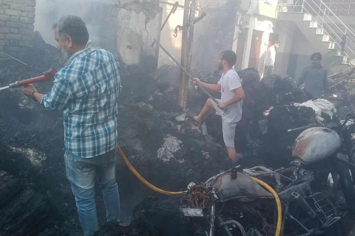 आग में मकान के चौक में रखी लकड़ियों का ढेर, रूई के बंडल, बाइक व मकान का सामान जल गया। मकानों की छत पर चढ़कर आग की लपटों को पानी की बौछार करके बुझाया। इसके बाद मकान के अंदर जाकर आग पर काबू पाया।