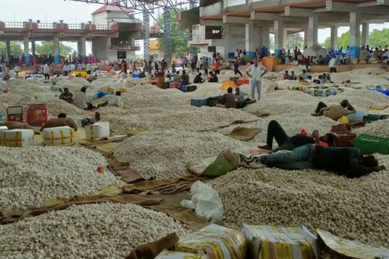 भामाशाहमंडी में सोमवार को सभी कृषि जिन्सों की आवक लगभग 60000 कट्टे की रही। सोयाबीन 50, चना 50 रुपए तेज रहा। लहसुन लगभग 8000 कट्टे की आवक रही। भाव 1500 से 8000 रहे। बोक्स पेकिंग 4000 से 8500 रुपए प्रति क्विंटल रहा। लहसुन 200 तेज रहा। किराना बाजार में विशेष अंतर नहीं आया।