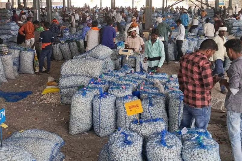 भामाशाहमंडी में शुक्रवार को सभी कृषि जिन्सों की आवक लगभग 45000 कट्टे की रही। गेहूं 25 रुपए मंदा, सोयाबीन 25, धान 50, सरसों 100 रुपए तेज रहा। लहसुन लगभग 8000 कट्टे की आवक रही। भाव 1500 से 7500 रहे। बोक्स पेकिंग 4000से 7800 रहा। लहसुन 200 तेज रहा। किराना बाजार में विशेष अंतर नहीं आया।