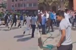 वीडियो में देखा जा सकता है कि पहले हल्की बहस हुई, फिर गुस्सा बढ़ गया। देखते ही देखते लोगों ने एक-दूसरे की कॉलर पकड़ ली। प्लेटें नीचे गिर गईं और लात-घूंसे चलने लगे। जो माहौल कुछ देर पहले तक इबादत का था, वह अचानक कुश्ती के अखाड़े जैसा बन गया। कुर्सियां खिसक गईं और लोग एक-दूसरे को धक्का देते नजर आए।