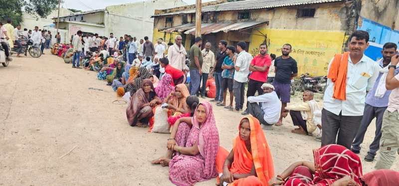 कृषि मंडी में खाद के लिए लगी लंबी लाइन में लगे किसान पंचम सिंह दलगंजन का पुरा हड़बांसी अपने घर से लेकर आए पराटें खाते नजर आए। जब उनसे पूछा गया तो उन्होंने बताया कि पूर्व में जब खाद लेने आया था तो शाम हो गई थी। लाइन से निकलकर बाजार में खाने जाते हैं तो फिर खाद लेने से रह जाएंगे, इसलिए घर से खाना लेकर आए हैं।