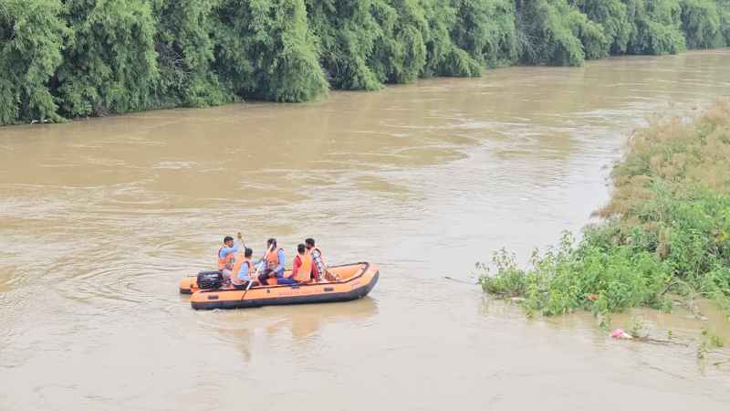 मुरैना. छौंदा नदी में विवाहिता के छलांग लगाने की खबर पाकर पुलिस प्रशासन हरकत में आया और एसडीआरएफ की टीम को बुलाकर नदी में वोट से सर्चिंग शुरू करवाई। उधर ट्यूब से नदी में उतरे मौहल्ले के किशोर ने डेढ़ घंटे बाद विवाहिता को बाहर निकाल लिया।