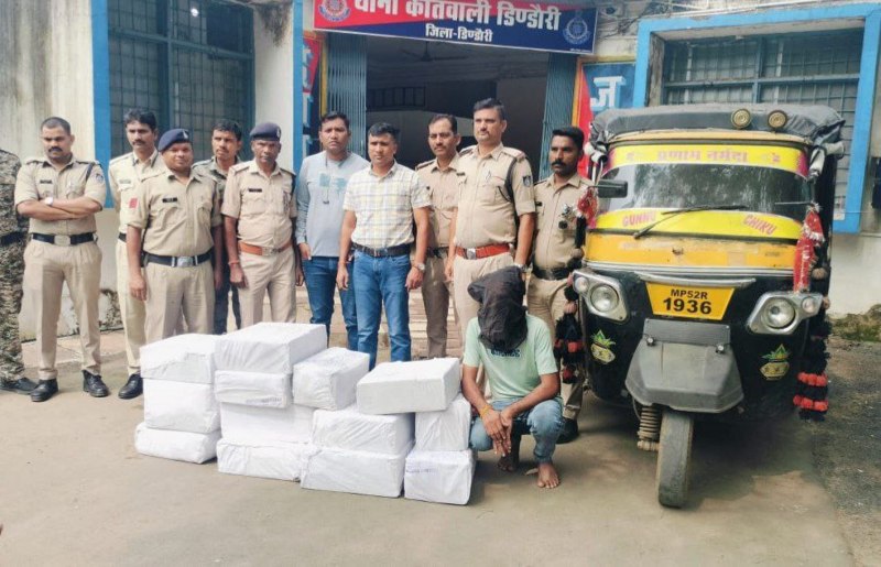 डिंडौरी. कोतवाली पुलिस ने थाना क्षेत्र में नाकाबंदी कर शराब की तस्करी करने वाले एक ऑटो चालक को गिरफ्तार किया है। चालक के कब्जे से पुलिस ने 114 लीटर शराब जब्त की है। पुलिस को जानकारी मिली कि एक व्यक्ति ऑटो क्रमांक एमपी 52 आर 1936 से समनापुर की ओर से डिंडौरी की तरफ शराब का अवैध परिवहन कर रहा है। पुलिस अमरपुर रोड पर नाकाबंदी कर वाहन को रोकने का प्रयास किया। पुलिस को देखकर वाहन चालक चाबी फेंककर भागने की कोशिश करने लगा, जिसे घेराबंदी कर पकड़ा गया। वाहन की तलाशी लेने पर 114.3 लीटर अंग्रजी शराब कीमत 97005 रुपए बरामद हुआ। पूछताछ में आरोपी चालक शैलेन्द्र उर्फ शैलू मथेस 34 वर्ष निवासी ग्राम मोहदा ने बताया कि दीपावली पर्व के लिए वह शराब बिक्री करने के लिए ले जा रहा था, पुलिस ने चालक के घर से भी कुछ शराब जब्त की । इस प्रकार पुलिस ने चालक के कब्जे से शराब, वाहन, मोबाइल व नकदी 12250 रुपए सहित कुल 2.61 लाख रुपए का मशरुका जब्त किया है। आरोपी के विरुद्ध पुलिस ने अबाकारी एक्ट के तहत कार्रवाई की है। इस कार्रवाई में थाना प्रभारी दुर्गा प्रसाद नगपुरे, उपनिरीक्षक भिपेन्द्र पाठक, सहायक उपनिरीक्षक अखिलेश श्रीवास, अरूण पटेल, हनुमान सिंह, आदित्य शुक्ला, देवेन्द्र पटले, दीपक पटेल, सलीम खान, भूवनेश्वरी मरावी, आरक्षक हेमंत झारिया, बृजेश मरावी, सतेन्द्र डहेरिया, मनोज, आशीष घरडे, मितेन्द्र बघाडे की भूमिका रही।