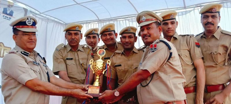 ब्यावर. पुलिस स्थापना दिवस पर आयोजित वॉलीबॉल प्रतियोगिता में जैतारण की विजेता टीम को शील्ड प्रदान करते पुलिस अधीक्षक।