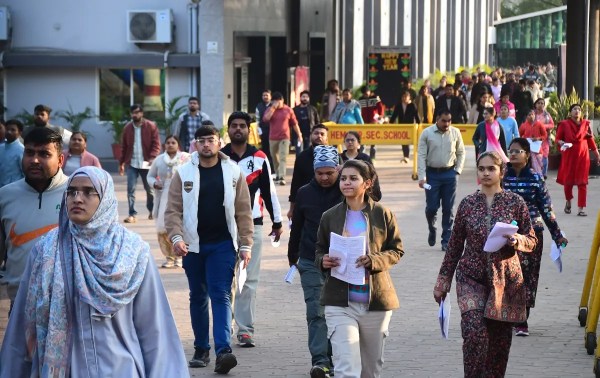 परीक्षा देकर बाहर निकलते अभ्यर्थियों के चेहरे पर उम्मीद