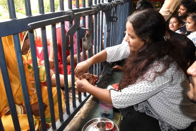 जयपुर में जेल में बंद कैदियों के राखियां बांधती हुई। फोटो— रघुवीर सिंह