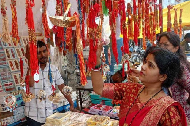 भोपाल में राखी का त्यौहार निकट आते ही मार्केट में बढ़ने लगी खरीदारी। फोटो— सुभाष ठाकुर