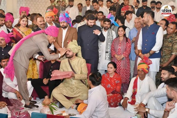 Mukesh Bhakar-Komal Meena Marriage : कांग्रेस विधायक मुकेश भाकर का टीका। साथ में बैठी हैं राजस्थान की डिप्टी सीएम दीया कुमारी। फोटो- @MukeshBhakar_