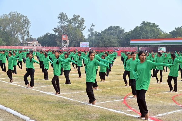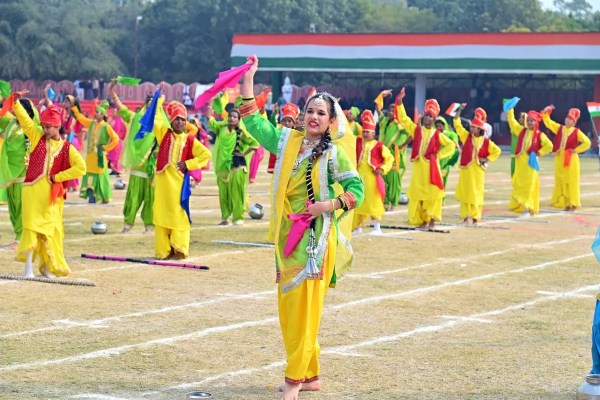 कोटा. जिले भर में 77 वां गणतंत्र दिवस गरिमामय एवं उल्लासपूर्ण माहौल में मनाया गया। जिला स्तरीय मुख्य समारोह सोमवार को महाराव उम्मेदसिंह स्टेडियम में आयोजित हुआ। जिसमें मुख्य अतिथि शिक्षा, संस्कृत शिक्षा एवं पंचायती राज मंत्री मदन दिलावर ने ध्वजारोहण किया। राष्ट्रगान के उपरांत मुख्य अतिथि ने परेड का निरीक्षण कर मार्चपास्ट कीसलामी ली।व्याख्याता किरण सिंह के निर्देशन में हरित थीम शारीरिक व्यायाम प्रदर्शन किया और नृत्य गुरु बरखा जोशी के निर्देशन में सामूहिक नृत्य की प्रस्तुति दी