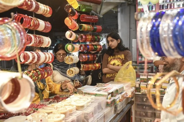 भोपाल में करवा चौथ पर्व के पूर्व न्यू मार्केट में महिलाओं ने जमकर खरीदारी की । उन्होंने मेंहदी ,चूड़ियां, करवा और पूजा सामग्री पसंद करने के लिए पहुंची महिलाएं । फोटो सुभाष ठाकुर