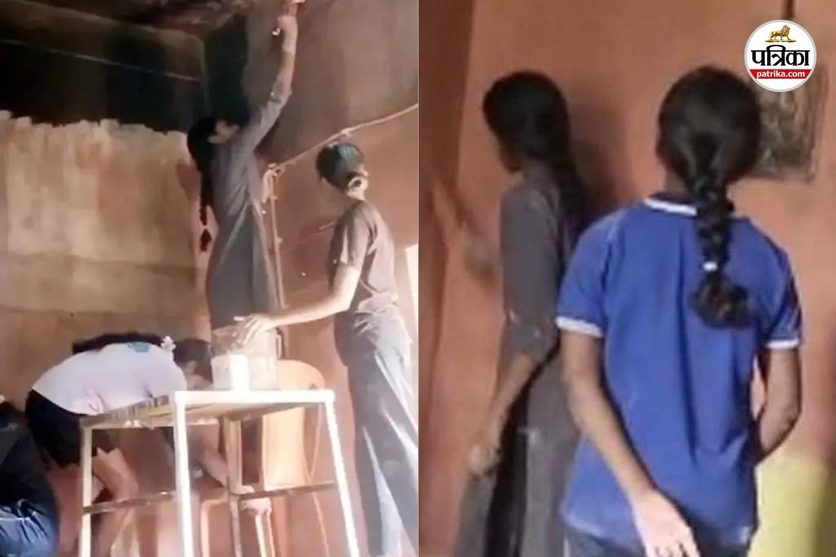 छात्रावास में छात्राओं से कराई गई रंगाई-पुताई (फोटो सोर्स- पत्रिका)