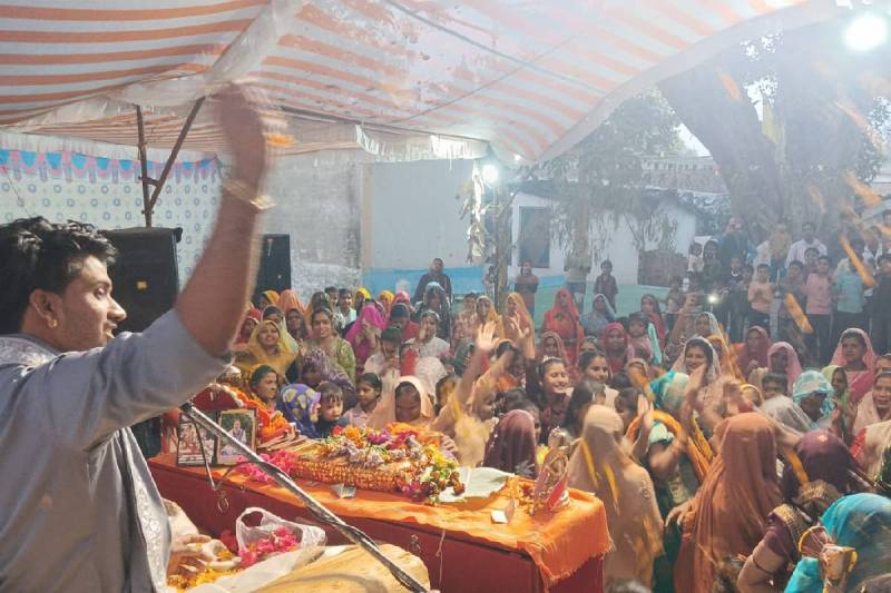 चनाटौरिया स्थित नयाखेड़ा गांव में आयोजित हो रही शिव महापुराण कथा के चौथे दिन भगवान शिव माता पार्वती का विवाह उत्सव धूमधाम से मनाया गया। कथा वाचक अजय कृष्णा रसिक ने कहा कि शिव कथा सुनने से मनुष्य के सभी कार्य सिद्ध हो जाते हैं। उन्होंने अन्नदान का महत्व बताते हुए कहा कि जिसे भूख हो, दान उसे ही देना चाहिए। बगैर गायत्री वाले ब्राह्मण को दान देना वर्जित बताया गया है। गायत्री के बिना ब्राह्मण अधूरा है। दान ना कर सको तो शिव पूजन अभिषेक अवश्य करो। 9 करोड़ भगवान शिव के पंचाक्षरी जप करने से रुद्र स्वरूप हो जाता है। पार्थिव शिवलिंग सूर्य अस्त से पहले विसर्जित कर दिया जाना चाहिए। जो शिवलिंग की पूजा करता है उसके सारे कष्ट दूर हो जाते हैं। एक धार से ही भोले बाबा को जल अर्पित करना चाहिए। शिव भक्तों के बारे में बताते हुए कहा कि शिव भक्त यमलोक नहीं शिवलोक को प्राप्त होता है। कथा में मुख्य यजमान सुधा पवन शर्मा सहित उपस्थित सैकड़ों श्रद्धालुओं ने भगवान शिव पार्वती के पैर पखार कर जमकर नृत्य किया। कथा में अनिल पांडे, ज्ञानचंद शर्मा, महेश दत्त त्रिपाठी, रामकृष्ण गर्ग, शेखर तिवारी, बैजनाथ सिंह ठाकुर, उषा यादव, महेश आदि उपस्थित रह।