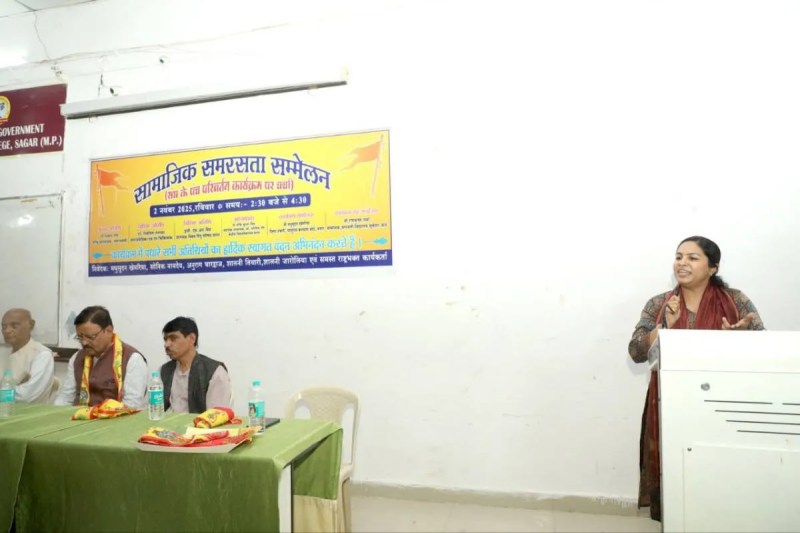 सहोद्रा राय पॉलिटेक्निक कॉलेज में सामाजिक समरसता सम्मेलन रविवार को हुआ। इस अवसर पर संघ के पांच परिवर्तन कार्यक्रमों पर विस्तृत चर्चा हुई। मुख्य वक्ता मधुसूदन खेमरिया ने कहा कि यदि आज के समय में सामाजिक समरसता के लिए कोई संगठन निरंतर और प्रभावी कार्य कर रहा है, तो वह राष्ट्रीय स्वयंसेवक संघ है। मुख्य अतिथि विक्रम मौर्य ने सभी प्रतिभागियों को मार्गदर्शन प्रदान किया। विशिष्ट अतिथि डॉ. निवेदिता रत्नाकर ने स्वदेशी विषय पर अपने विचार रखे। एसआर सिंह ने पर्यावरण संरक्षण पर प्रकाश डाला। अध्यक्षता डॉ. शशि कुमार सिंह ने की। रामकृष्ण शर्मा ने कुटुंब प्रबोधन विषय पर विचार रखे। संचालन एकता खेमरिया ने किया। आभार अनुराग भारद्वाज माना। इस अवसर पर अपर्णा संजीव दुबे, सोनिक नामदेव, अजय ठाकुर, डॉ. प्रियंका, ऋषिका रजक, रजनी पाठक, डॉ. प्रतिज्ञा तथा श्वेता नेमा प्रमुख रूप से शामिल थीं।