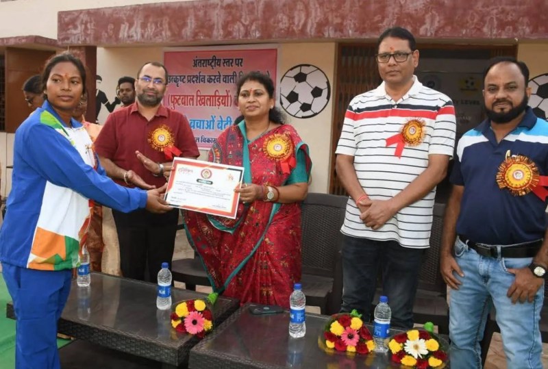 शहडोल. मिनी ब्राजील के नाम से पहचान बना चुके ग्राम विचारपुर के 5 फुटबॉल खिलाडिय़ों को विश्व स्तरीय प्रशिक्षण 4 से 12 अक्टूबर तक जर्मनी में प्रदान किया गया। प्रशिक्षण प्राप्त कर जर्मनी से वापस लौटे फुटबॉल खिलाड़ी सानिया कुंडे, लक्ष्मी सहीस, सुहानी कोल, वीरेंद्र बैगा, प्रीतम सिंह, मनीष घसिया को विधायक जयसिंहनगर मनीषा सिंह ने बिरसा मुंडा फुटबॉल मैदान में ट्राफी, प्रमाण पत्र एवं टी-शर्ट प्रदान कर सम्मानित किया। इस अवसर पर बेटी बचाओ, बेटी पढ़ाओ कार्यक्रम के तहत फुटबॉल मैच का आयोजन किया गया। जिसमें बालिकाओं की फुटबॉल टीम ने उत्कृष्ट खेल का प्रदर्शन किया।